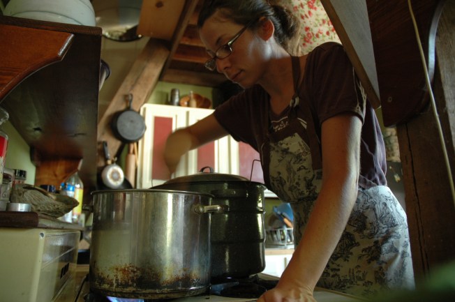 Throughout this year I have been a canning instructor to many a WWOOF pupil.  This last time I was able to fly solo and therefore speed up the process.  I like canning all alone.  No offense to any of those I’ve shown the process to, it’s just a nice thing to do in peace and quiet.  I brought my computer along and watched the movie Bruno with the commentary on.  It’s amazing what that guy was able to get away with.  In the end, it was me and 27 jars of blackberry jam.